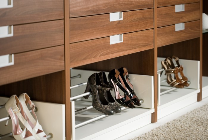 Wenn ein Kleiderschrank richtig zur Geltung kommen soll, ist Ordnung ein wichtiger Bestandteil. Hier hilft Ihnen der begehbarer Kleiderschrank ganz von allein. Durch die tolle Übersicht über Ihre Garderobe und den großen Stauraum halten Sie automatisch mehr Ordnung und es fällt Ihnen leichter, auszumisten. Sollten Sie mehr Kleider und Röcke statt Hosen und Pullover haben, die Sie vorher mühsam zusammenlegen mussten und dabei Knitterfalten riskierten, bringen Ihnen zusätzliche Kleiderstangen Ordnung in den Schrank.